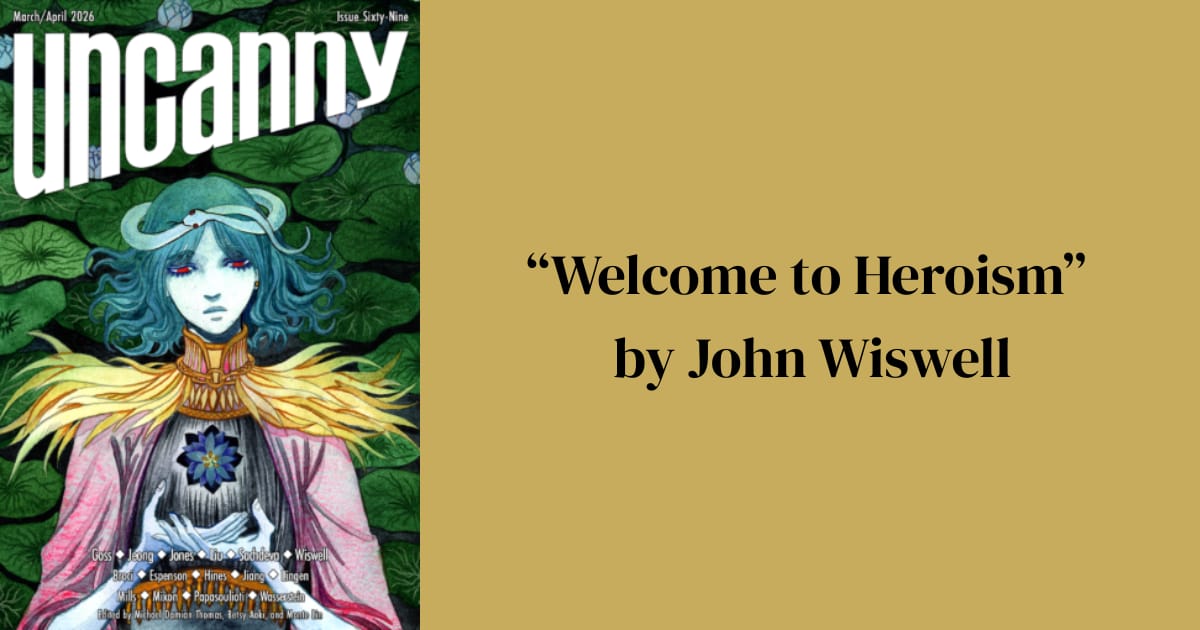 Pop culture, modern technology, and human capriciousness come to a head in John Wiswell’s tongue-in-cheek satire, Welcome to Heroism, published in Uncanny Magazine, Issue 69. Welcome to The Dare, a viral phenomenon inciting the attention-hungry to shock and impress the masses with their subversive, superhuman feats. Be ready to be amused… and low-key filled with dread.